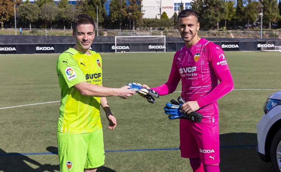 Piloto y jugador conducen en sus desplazamientos particulares modelos de Skoda. El primero se pone a diario al volante del SUV eléctrico Enyaq iV mientras que el portero del Valencia conduce un Karoq.