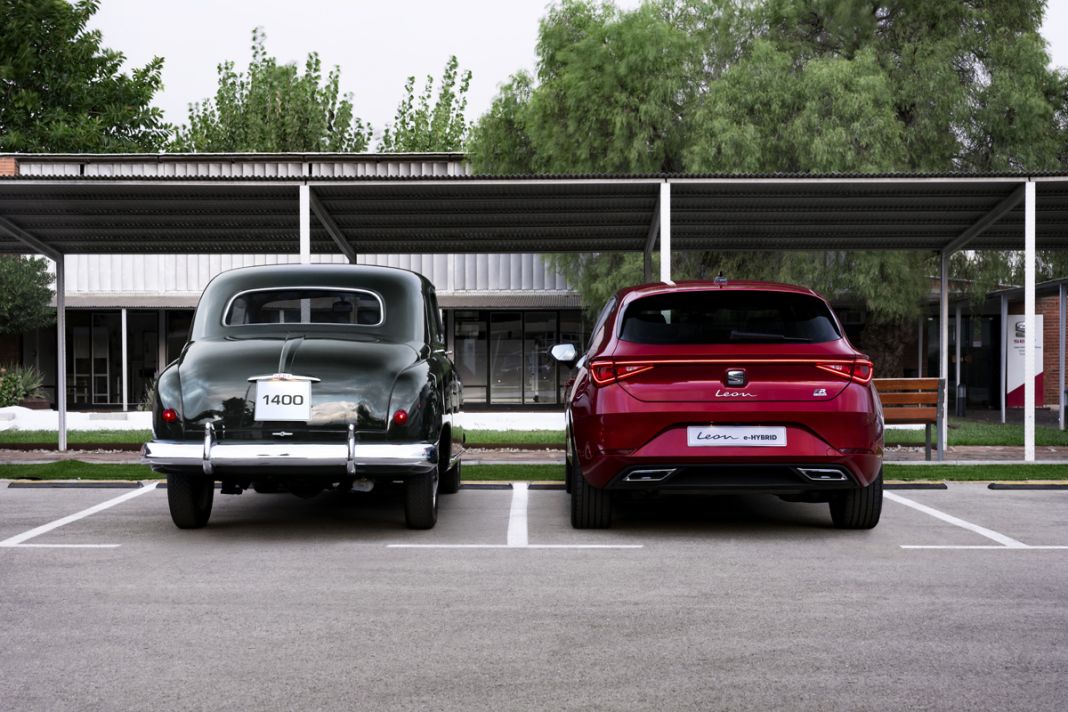 La evolución mecánica a lo largo de estos 70 años también ha sido enorme. Sin embargo, los motores térmicos del Seat 1400 y del León e-Hybrid, por ejemplo, comparten su cubicaje de 1.395 cc. Una curiosa similitud, pero que solo los acerca en eso, ya que el actual propulsor 1.4 TSI de 150 CV (110 kW) se combina con otro eléctrico de 115 CV (85kW) y permite al modelo desplazarse con electricidad y sin emisiones locales hasta 64 kilómetros.