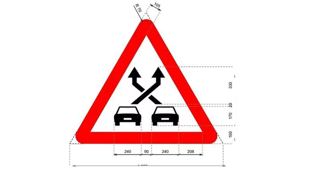 - P-35: Señal de tráfico de trenzado que advierte al conductor de la proximidad de un tramo que se encuentra comprendido entre una confluencia y una bifurcación donde se producen diferentes movimientos de cambio de carril.