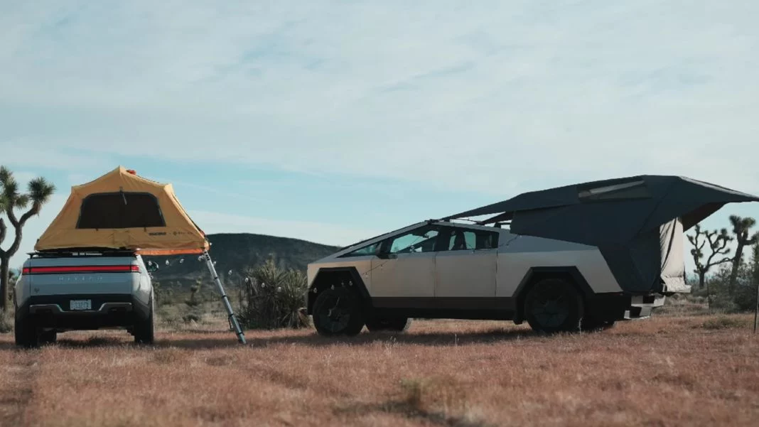 En contraste, la tienda del Rivian es una opción más simple y rápida. Se trata de una carpa de techo estándar de Yakima que se adapta perfectamente al R1T. Si bien su precio no es precisamente económico, alrededor de $2.800, su instalación y desmontaje se realizan en cuestión de segundos. En total termina saliendo mucho más barato que todo el Tesla Cybertruck y sus Cybertent.