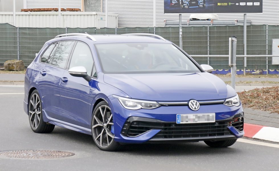 Hemos vuelto a ver en todo su esplendor y casi sin camuflaje, el Volkswagen Golf R Variant, la versión más versátil del compacto deportivo alemán. Y si anteriormento lo habíamos visto casi sin camuflaje, sobre la nieve en color blanco, ahora se muestra antes de entrar al circuito de Nürburgring en el color azul habitual de los modelos R de Volkswagen.