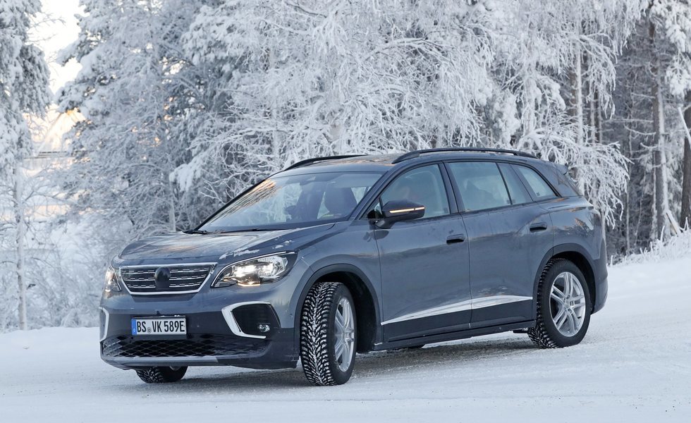 En este inhóspito ambiente, el tercer miembro de la familia ID sigue afilando sus armas. Aunque lo sigue haciendo disfrazado de un modelo de otra marca, para despistar. Los ingenieros de Volkswagen mantienen el camuflaje que hace parecer a este ID.6 un Peugeot 5008.