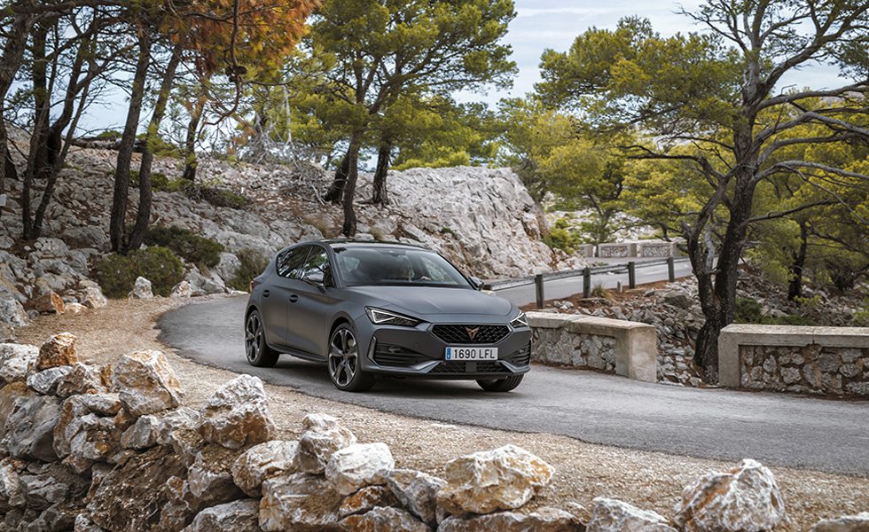 Al igual que ocurre en el Cupra Formentor, y dado que calcan el salpicadero, lo primero que llama la atención del Cupra León es su cuadro de instrumentación con una pantalla de 10 pulgadas (12 en el Formentor) y un volante deportivo con botones satélite integrados (arranque y modo CUPRA), calefactable, y con levas que cuesta 710 euros (de serie en Formentor). También destaca la calidad que se respira por cada poro del coche y la sensación de amplitud general, sin embargo la versión de 5 puertas esconde una sorpresa menos agradable cuando abrimos el portón trasero y encontramos un maletero de tan solo 270 litros (380 litros en el resto de los Cupra León), ya que debajo del piso ha habido que hacer hueco al depósito de combustible que a su vez ha sido desplazado a ese lugar por las baterías, en este caso situadas bajo el asiento trasero.