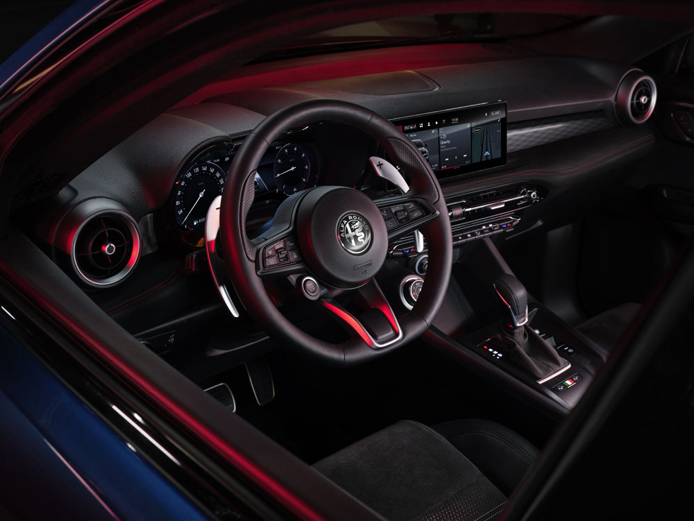 El salpicadero, muy bien organizado, con mandos grandes y bien posicionados, está presidido por una pantalla central táctil que tiene 10,25 pulgadas. Esta contempla actualizaciones ‘On Air’, tiene Amazon Alexa, conectividad 4G… Sin duda con este elemento Alfa Romeo da un salto cualitativo respecto a lo ofrecido con anterioridad en sus modelos.
