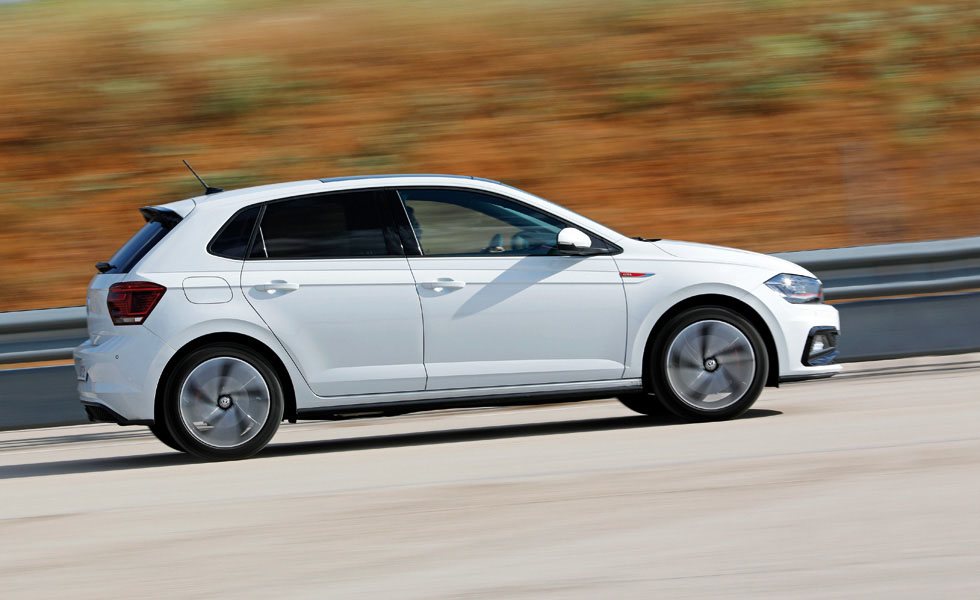 Más de uno lo verá pasar y no caerá en que este Polo es un tanto especial. Porque la personalización externa es relativamente discreta: al margen de los cuatro logos 'GTI' repartidos por su perímetro hay que fijarse en la parrilla tipo panal, las líneas decorativas rojas, las pinzas de freno en ese mismo color, los tubos de escape gemelos o unos alerones específicos delante y detrás. Y es que la marca alemana, que fabrica esta versión junto al resto de la gama Polo en Navarra, ha sido comedida incluso con la talla de los neumáticos: calza de serie unos 215/45 R17 con los que ya va muy bien, aunque podemos pedir por 440 euros los 215/40 R18. Es decir, que el Polo GTI, pese a sus recién estrenados 200 CV, se conforma con las mismas gomas de serie o en opción que cualquier Ibiza FR, incluso cuando el modelo de Seat monta el diésel 1.6 TDI de 95 CV. Curioso, acertado y otro ejemplo más de que con la rueda 'justa' también se logra eficacia.