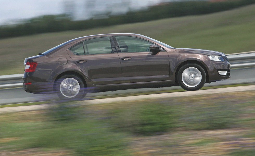 En cuanto al chasis, todo nos parece del nivel indicado para las prestaciones o el peso del conjunto. Por ejemplo, los frenos cumplen bien -54,7 metros para detenernos desde 120 km/h- y la dirección es precisa, suave y más rápida que en la generación anterior: 2,75 vueltas entre topes. Los neumáticos, de medida 205/55 R16 con el acabado Ambition, nos han parecido adecuados, incluso a plena carga. Más, desde luego, que los 195/65 R15 del nivel Active -por justos- o los 225/45 R17 del Elegance -por excesivos-. Pero si tenemos el capricho, al Octavia Ambition también le podemos poner el 'calzado gordo' por sólo 190 euros, pues Skoda ofrece en esta tercera generación una extensa lista de opciones -digna de una marca 'premium'-, y a buenos precios: asistente de aparcamiento, levas de cambio en el volante, airbag laterales traseros, faros bixenón, tapicería de tela/cuero, ayuda al arranque en pendiente, detector de fatiga, alerta por cambio de carril, luz de carretera automática, techo de cristal eléctrico, calefacción en los asientos delanteros y traseros, navegador… Vamos, que configurarse un Octavia a la medida es tarea sencilla.