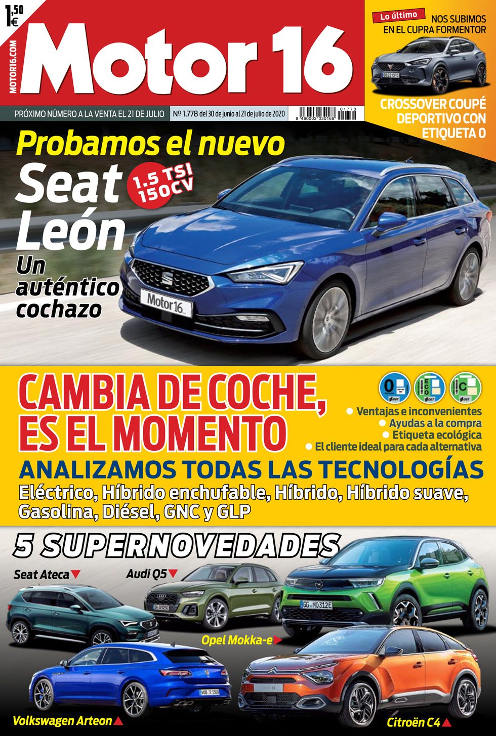 El nuevo Seat León llega dispuesto a seguir siendo líder y referencia en el mercado de los compactos. Nuestra prueba a fondo confirma sus pretensiones. Además, cinco grandes novedades para reactivar el mercado: Audi Q5, Citroën C4, Cupra Formentor, Opel Mokka-e, Seat Ateca y Volkswagen Arteon. Y analizamos las ventajas y desventajas de las ocho tecnologías de propulsión disponibles: Eléctricos (Honda e, Peugeot e-208 o VW ID.3), Híbridos enchufables (Kia XCeed PHEV), Hïbridos (Hyundai Ioniq), Híbridos suaves (Fiat 500 y Panda Hybrid), Gasolina (VW Golf), Diésel (Ford Kuga), GNC (Skoda Kamiq) y GLP (Dacia Sandero). Y el primer mapa, con todos los puntos de carga de coches eléctricos de España creado por Iberdrola.