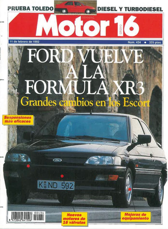 El compacto de la marca americana había sido renovado hacia un año y medio… pero se les había olvidado incluir una versión deportiva. Los nuevos XR3i solucionaban esa ausencia. Los renovados Ford Escort y Orion eran el principal reclamo de la portada, con sus variantes XR3i.