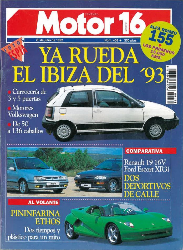 La primera generación del Seat Ibiza estaba viviendo sus últimos momentos y el segundo Ibiza, que descubríamos en exclusiva, estaba casi listo para darle el relevo y seguir consolidando su leyenda. El nuevo Seat Ibiza, que habíamos descubierto camuflado meses antes de su presentación, era el gran protagonista de la portada. Junto a él, la comparativa entre Ford Escort y Renault 19 y el sorprendente Pininfarina Ethos. Y los primeros 15.000 kilómetros con el Alfa 155.