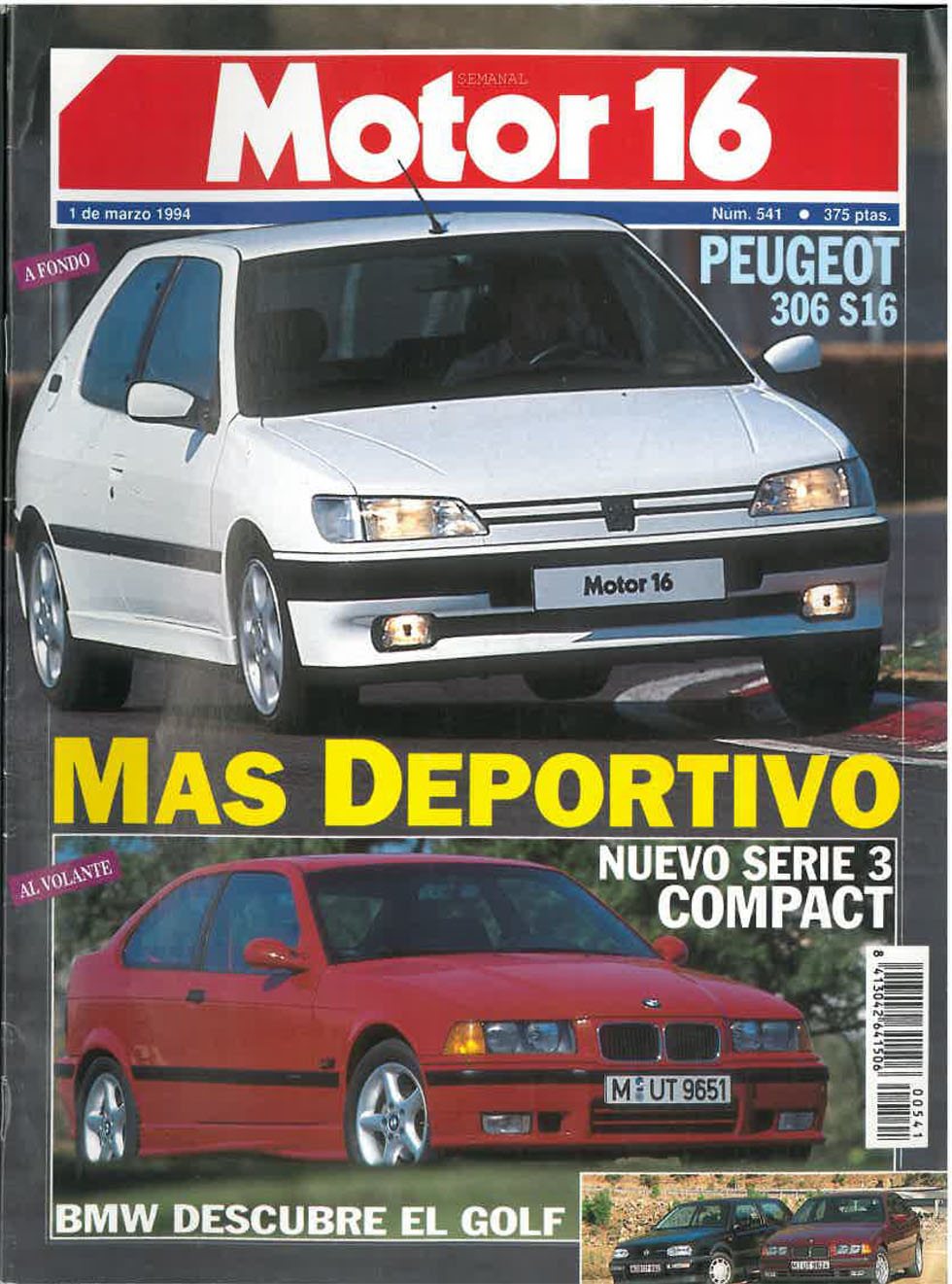 El protagonismo de los modelos compactos en la revista de esta semana se reflejaba en una portada en la que la prueba del Peugeot 306 S16 y la toma de contacton con el BMW Serie 3 Compact, eran las imágenes principales de esta portada. El compacto alemán, además, se medía al Golf en nuestra primera. Las familias estaban de moda y los vehículos para ellas también. Con los monovolumen en auge, Citroën lanzaba el Evasion, su primer modelo con estas características.