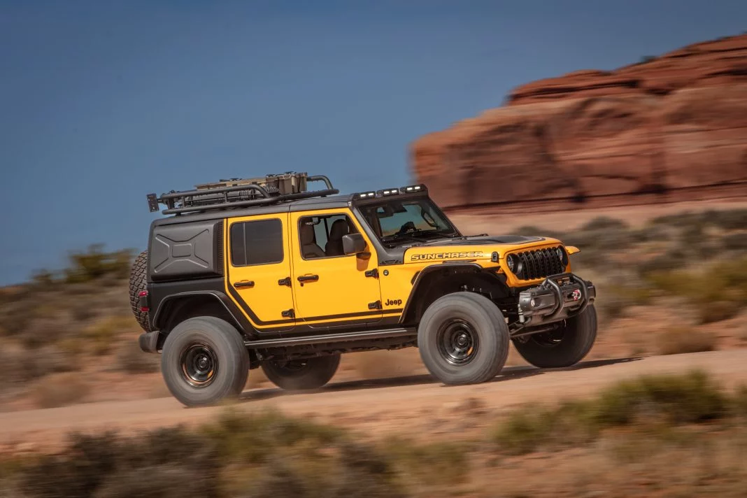 El Jeep Wrangler Rubicon Sunchaser 4xe se define como “el aventurero al aire libre definitivo que lleva todo el equipo necesario para un día completo de actividades desde el amanecer hasta el anochecer”. Ha sido creado por Mopar, la división de recambios y accesorios de Jeep para mostrar no sólo las posibilidades del catálogo de piezas originales de la marca, sino incluso para ir “un paso más allá” con algunos de estos componentes, tal y como nos cuenta Mark Trostle, vicepresidente de diseño de Mopar y Ram.